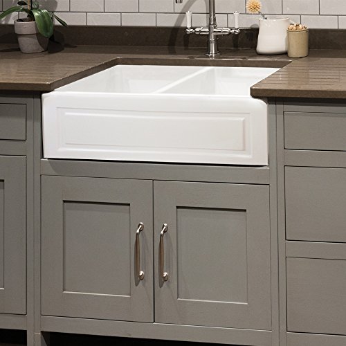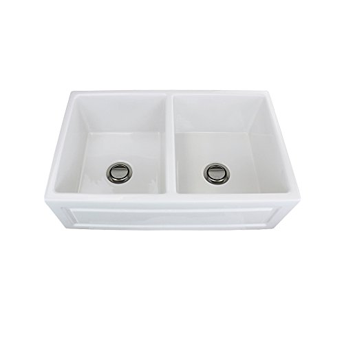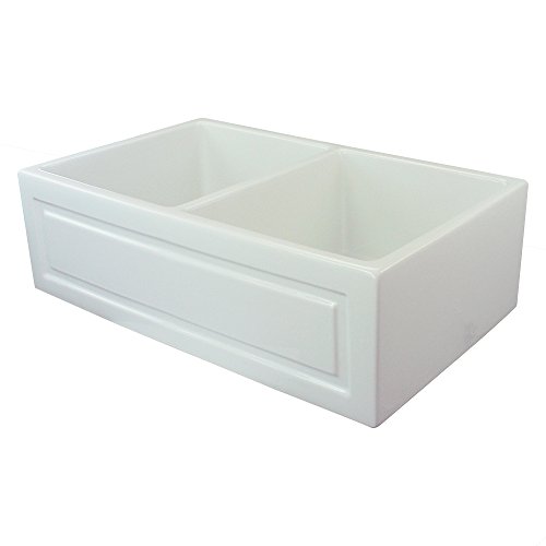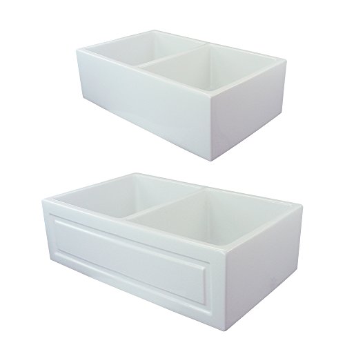 Transolid FUDH332010 Versailles 33-in x 20-in x 10-in Double Bowl Reversible (French/Plain) Thick Wall Farmhouse Fireclay Kitchen Sink, White