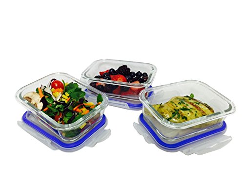 Set includes 3-12oz Rectangular Glass Containers and 3 Plastic Lids