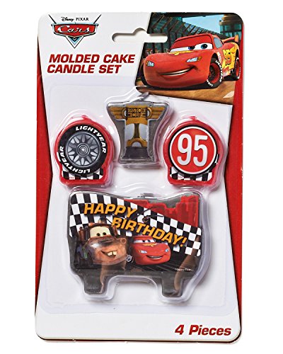 This Disney's Cars birthday candle set features Lightning McQueen and Mater, a Lightyear tire, a racing number and the Piston Cup!