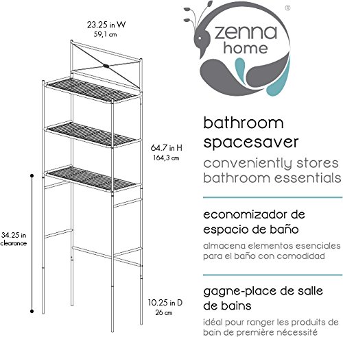 If you require additional shelving but can't sacrifice valuable floor space, the Zenna Home Cross Style Spacesaver can help. This shelving unit utilizes the wasted storage area above the toilet for maximum space efficiency. Steel tubes provide a durable frame while the white, bronze or satin nickel finish resists both chipping and rust. Three large, fixed shelves can accommodate a wide variety of bathroom products. Cleans easily by using a damp cloth. Step by step instructions allow for easy assembly. ZPC’s toll-free USA based Customer Service department is available (800-892-3986) to answer any additional questions.
