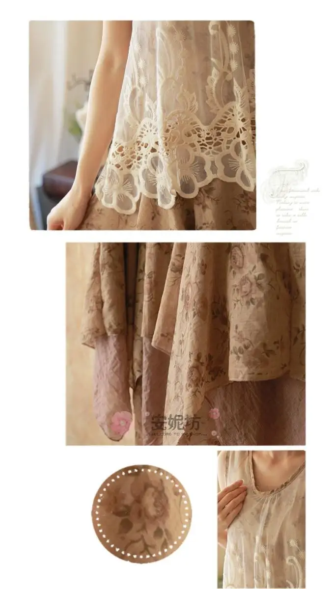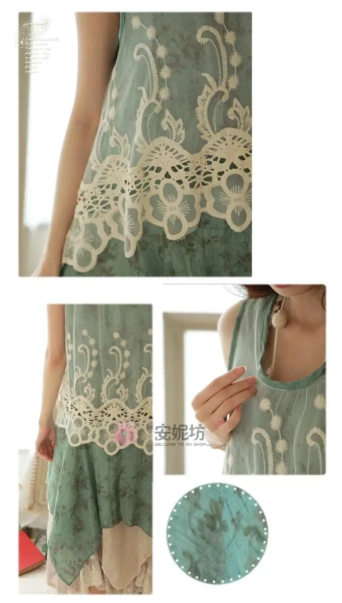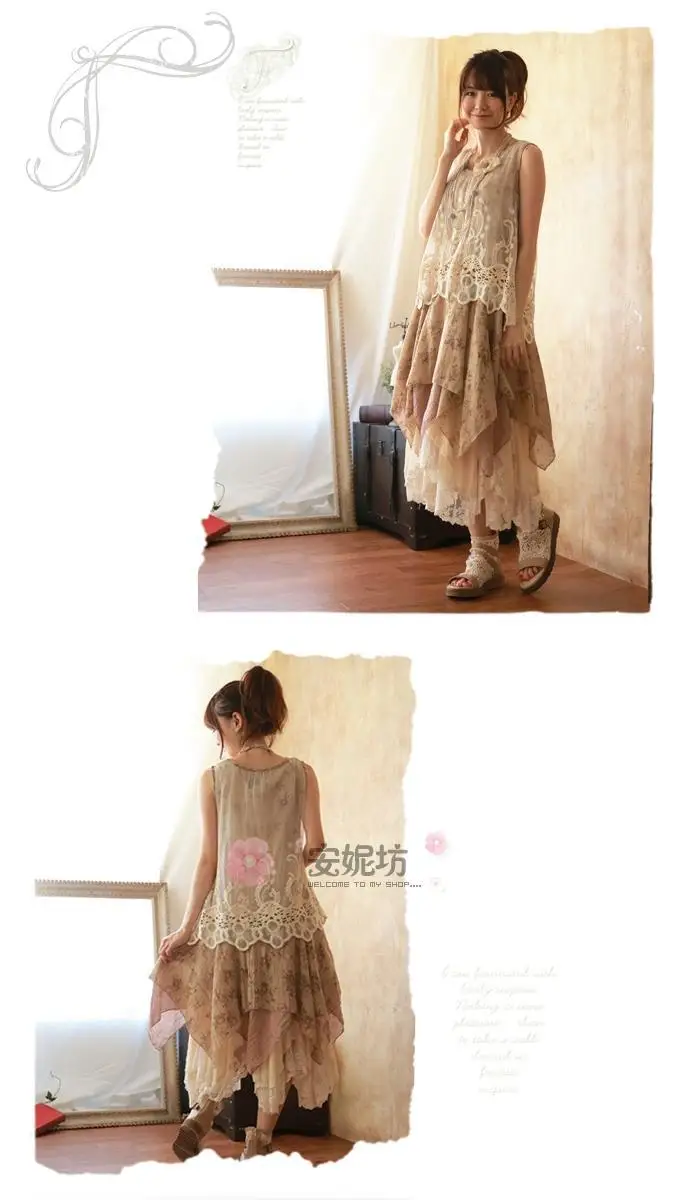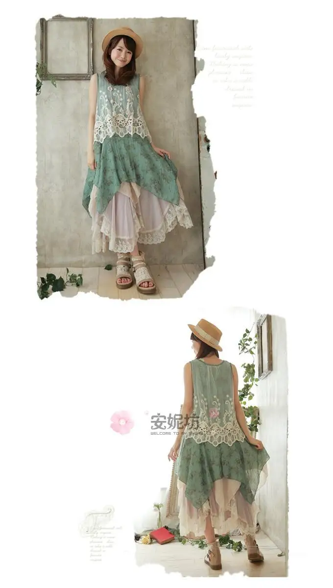 森ガールレース刺繍プリンセス夏タンクドレス女性gispy服vestido段faldasロリータサラファンユニークなtuniqueヒッピー