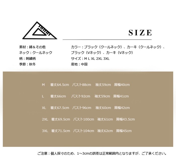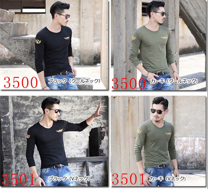 Tシャツ メンズ 長袖 ロゴT カットソー メンズ Tシャツ 大きいいサイズ Vネック インナー ストレッチ ゆったり 2018新作登場 カットソー メンズ 長袖 Vネック トップス 送料無料商品詳細素材:綿&その他ネック:クールネック柄:刺繍柄季節:秋冬カラー:ブラック(クールネック)、カーキ(クールネック)、ブラック(Vネック)、カーキ(Vネック)サイズ:M L XL 2XL 3XL産地:中国サイズ参照表M 着丈64.5cm バスト88cm 袖丈59cm 肩幅40cmL 着丈66cm バスト92cm 袖丈59cm 肩幅41cmXL 着丈67.5cm バスト96cm 袖丈60cm 肩幅42cm2XL 着丈69.5cm バスト100cm 袖丈61cm 肩幅43.5cm3XL 着丈71.5cm バスト104cm 袖丈62cm 肩幅45cmご注意:個人採寸のため、1~3cmの誤差は正常範囲内となりますが、ご了承ください。Tシャツ メンズ 長袖 ロゴT カットソー メンズ Tシャツ 大きいいサイズ Vネック インナー ストレッチ ゆったり 2018新作登場 カットソー メンズ 長袖 Vネック トップス リネンTシャツ