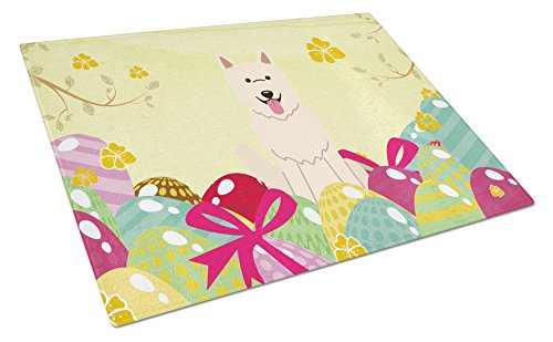 Caroline's Treasures Easter Eggs White German Shepherd Glass Cutting Board Large, Multicolor