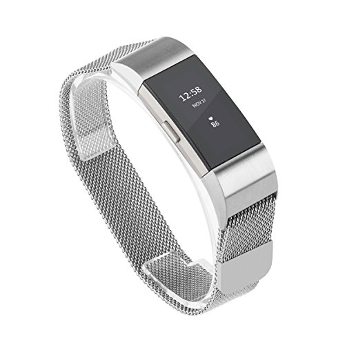 Fitbit Charge 2 Bands, UKCOCO Replacement Bands for Fitbit Charge 2, Stainless Steel Milanese Metal Large