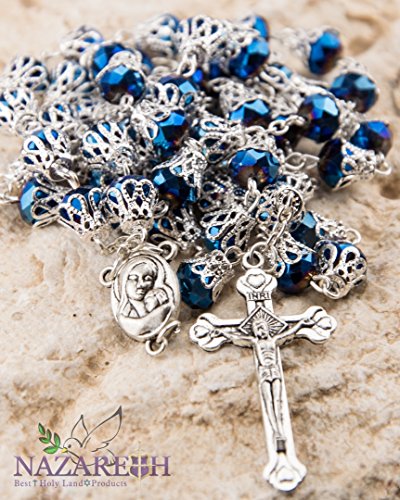 -. Binding : Kitchen -. Brand : Nazareth Market Store -. Color : Blue -. Department : religion -. Feature : Amazing High Quality Jerusalem Long Beaded Rosary With Deep Blue Crystal Prayer Beads With Holy Soil Medal On one Side And Virgin Mary On The Other. The Beads lead to the Holy Soil Medal And To Silver Plated Crucifix that Hangs From a Single Row of beads Handmade From Holy Land. / (H X W) Cross: 4 cm x 2 cm / 1.6" x 0.8" / Rosary Length: 47cm / 18.5" / Most Beautiful & unique items not found in stores, Most of The items Made in Jerusalem and Nazareth (the HOLY LAND) Offering you High Quality Items. / DON'T MISS YOUR CHANCE TO HAVE A SMALL PART OF HOLY LAND IN YOUR HOME! -. Label : Hand Made In Nazareth & Jerusalem HOLY LNAD (Israel) -. Manufacturer : Hand Made In Nazareth & Jerusalem HOLY LNAD (Israel) -. MPN : VF8QB22 -. PackageQuantity : 1 -. PartNumber : VF8QB22 -. ProductGroup : Jewelry -. ProductTypeName : FASHIONNECKLACEBRACELETANKLET -. Publisher : Hand Made In Nazareth & Jerusalem HOLY LNAD (Israel) -. Size : 4 cm x 2 cm / 1.6" x 0.8" ,47cm / 18.5" -. Studio : Hand Made In Nazareth & Jerusalem HOLY LNAD (Israel) -. Title : Unique Deep Blue Crystal Beads Rosary Catholic Necklace Holy Soil Medal & Cross -