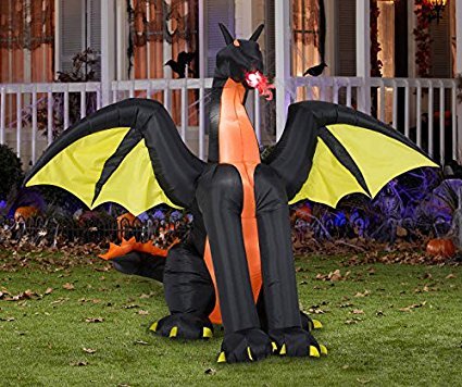 -. Title : 7 Foot Wide Inflatable Halloween Dragon - Fire Breathing Look