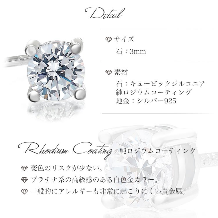 | 素材 | 石:キュービックジルコニア 純ロジウムコーティング 地金 : シルバー925 |