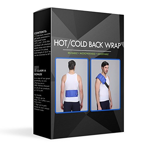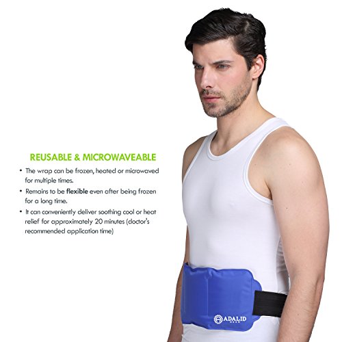 ALL-IN-ONE SOLUTION FOR PAIN RELIEF: A great first aid essential for home or clinical use when relieving pain & treating injuries by hot or cold therapy on your back, shoulder, torso, thighs, or any large area of your body. With the attached adjustable velcro straps on the gel ice pack, this whole wrap can securely stay in place, keeping you mobile and comfortable at all times. (Total length of the whole wrap is 42.5" and can be stretched up to 50" — it fits waist size of 29" and up)