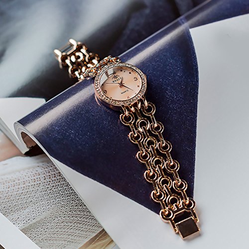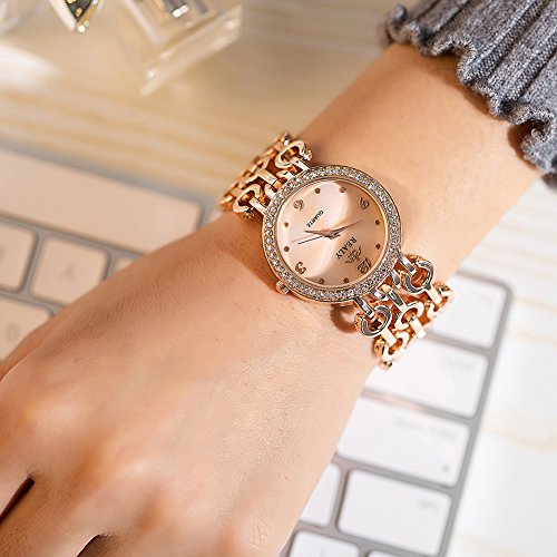 ♥ TRENDY BRACELET DESIGN: The sparkle crystal watch face with well tone chain-like band, make it not just a wrist watch for women but a chic jewelry on your wrist.