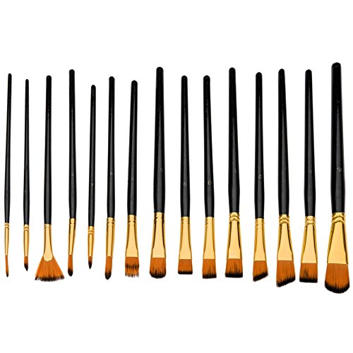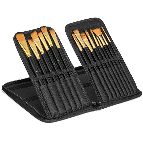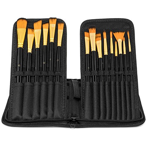 - 15 BRUSH SET WITH CASE - The assorted set gives you a variety of sizes and angular, flat, filbert, round and flat tips making it perfect for teens, students, beginners and artist of all ages and abilities.