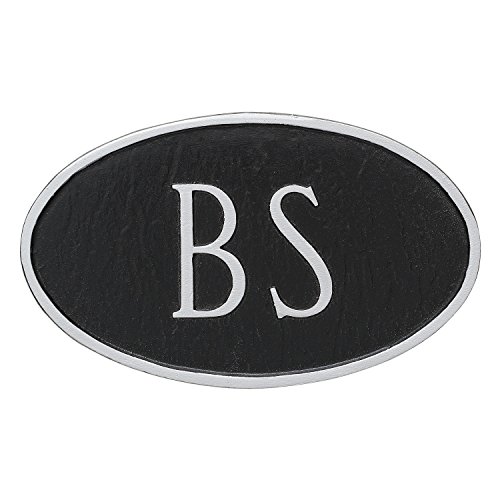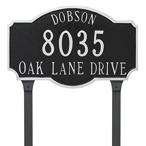 Montague Metal PCS-0053S2-L-BS 9.75" x 15.5" Two Line Address Sign Plaque with Lawn Stake, Standard, Black/Silver