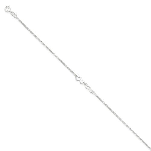 -. Title : Genuine 925 Sterling Silver Polished w/1in. Ext. Heart Bracelet Length 9 Inch With SP.R.Ing Ring
