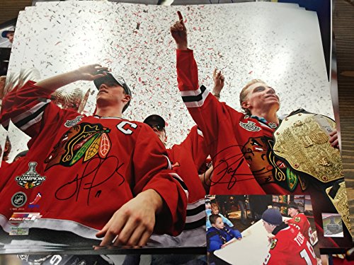 Patrick Kane Jonathan Toews Dual Signed Autographed Blackhawks Stanley Cup Champs 16x20 Photo COA & Hologram