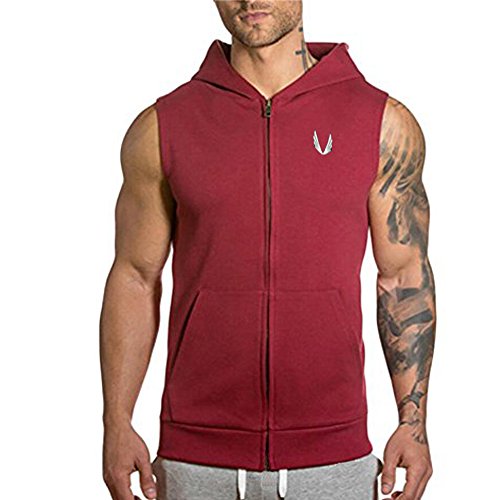 -. Title : Men's Gym Fitted Sleeveless Zip Hoodie Tapered Sport Bodybuilding Vest Sweatshirt 3 Colors