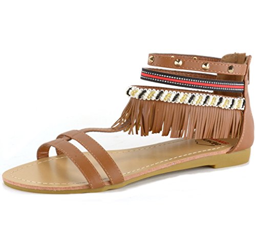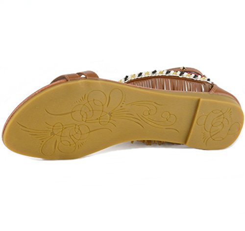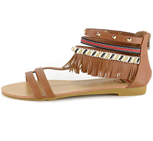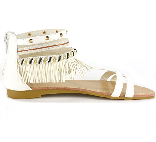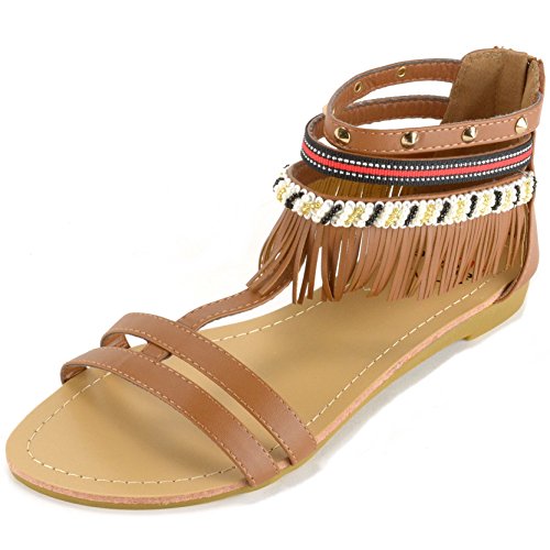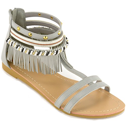 Alpine Swiss Womens Beaded Studded Fringe Flat Gladiator Sandals