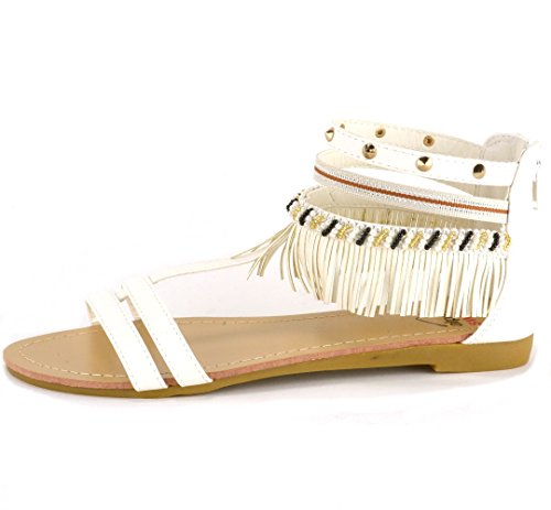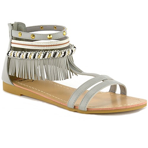 Product DescriptionAlpine Swiss Womens Fringe Sandals Beaded Studded Gladiator Strappy Ankle Flats0
