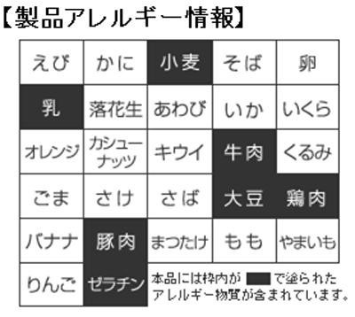 | 原材料 | うるち米(国産)、具(粒状大豆たん白・コーン・人参)、食塩、砂糖、ビーフパウダー、カレー粉、ローストオニオンパウダー、植物性油脂、粉末醤油、パセリ、ソルビトール、調味料(アミノ酸等)、香料、微粒酸化ケイ素、トレハロース、香辛料抽出物、酸味料、着色料(カラメル、カロチノイド)、酸化防止剤(ビタミンE)、(原材料の一部に小麦、乳、鶏肉、豚肉、ゼラチンを含む) |
