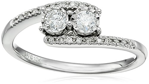 10K White Gold Bypass Two Stone Diamond Ring (1/4cttw, H-I Color, I2 Clarity), Size 7