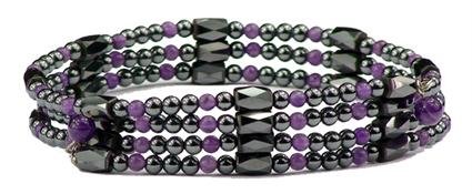 -. Title : Simulated Amethyst Wrap Around Simulated Hematite - Magnetic Therapy Bracelet/Anklet (WA-A1)