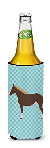 Caroline's Treasures BB8080MUK Percheron Horse Blue Check Decorative Hugger, Slim Can, Multicolor