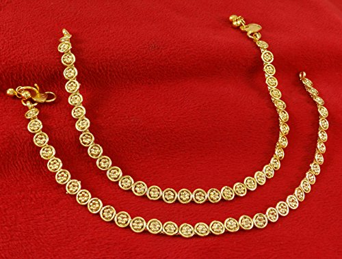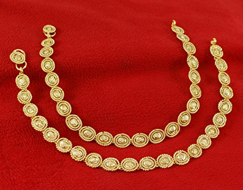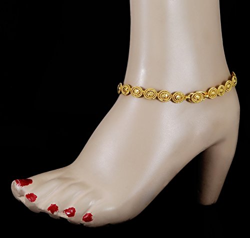 -. Binding : Jewelry -. Brand : Banithani -. Department : womens -. Feature : Add an edge to your traditional look by wearing this pair of goldtone anklets for women. / Sale For: 1 Pair Anklet; Metal: Alloy / Size: 10.8" Inches Long and 0.3" Inches Wide; Weight: 51.94 Gms / SKU: SA1198A; Made in India / Discover more Beautiful Jewelry from our collection, click on the link "Banithani" above the title. -. Label : Banithani -. Manufacturer : Banithani -. Model : SA1198A -. MPN : SA1198A -. PartNumber : SA1198A -. ProductGroup : Jewelry -. ProductTypeName : FASHIONNECKLACEBRACELETANKLET -. Publisher : Banithani -. Studio : Banithani -. Title : Banithani Goldtone Indian Anklet Traditional Barefoot Chain Payal Ankle Bracelet Jewelry