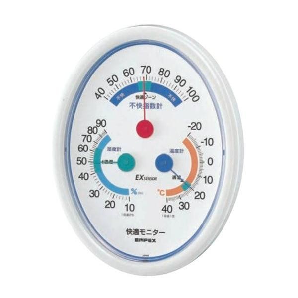 正確で見やすい温・湿度計に、不快指数計をプラス。お部屋の快適度が一目でわかります。 製造国:日本 素材・材質:PS樹脂 商品サイズ:約168×130×19mm 仕様:掛け型 付属品:取扱説明書、保証書(保証期間:1年間) ※サプライヤー直送品 ご注文後5~6営業日後の出荷となります【商品名】EMPEX(エンペックス気象計) 快適モニター(温度・湿度・不快指数計) CM-6301