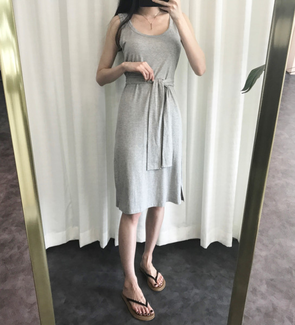 시원한 민소매 라인의 원피스로