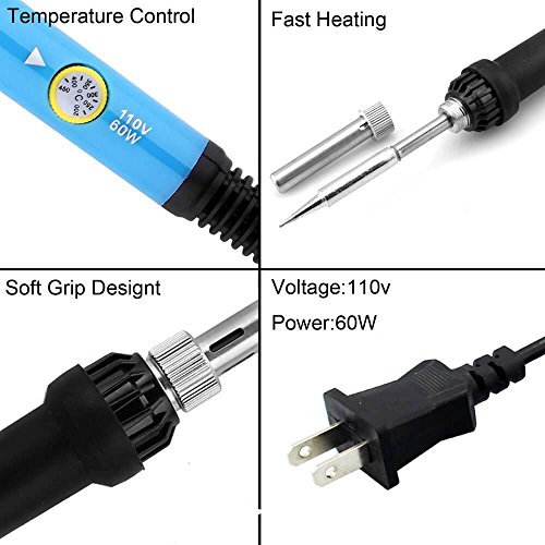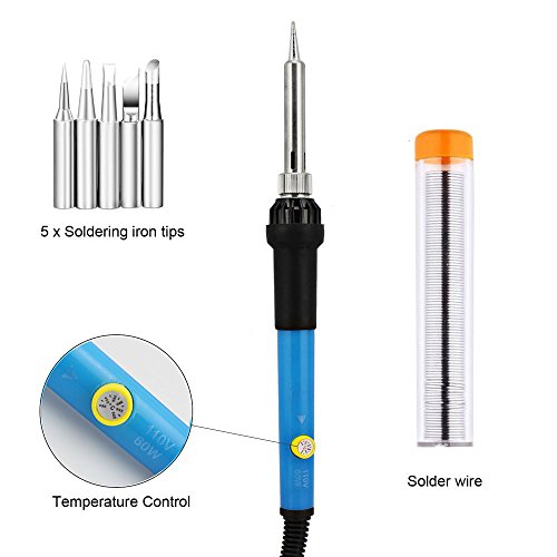 Elecrow 9 Pieces Set Soldering Iron Kit 60w - 110v - Adjustable Temperature 5pcs Different Tips Desoldering Pump Stand anti-static Tweezers and Additional Solder Tube for Electric Work