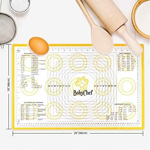 - SAVE TIME AND EFFORT: The BobyChef silicone baking mat features printed conversion charts that will help you effortlessly convert temperature, weight and liquid measurements! No more maths for you! You will have everything ready at a glance!