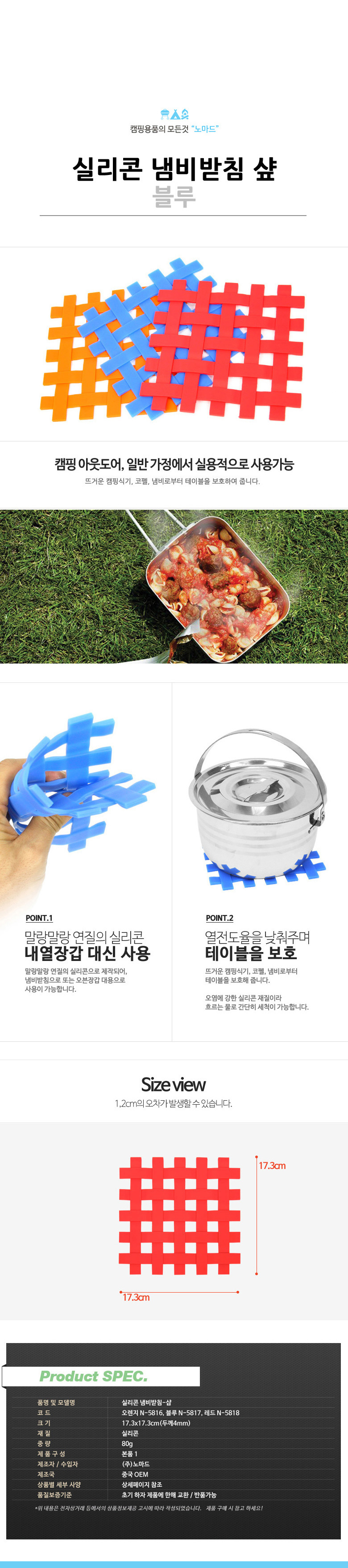 • 품명 실리콘 냄비받침 샵 블루