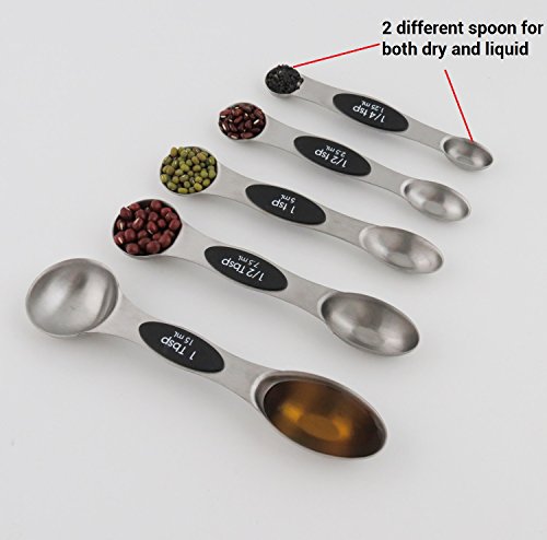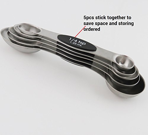 Kingware Home Magnetic Measuring Spoons, 18/10 Stainless Steel Set of 5 for Measuring dry and Liquid Ingredients
