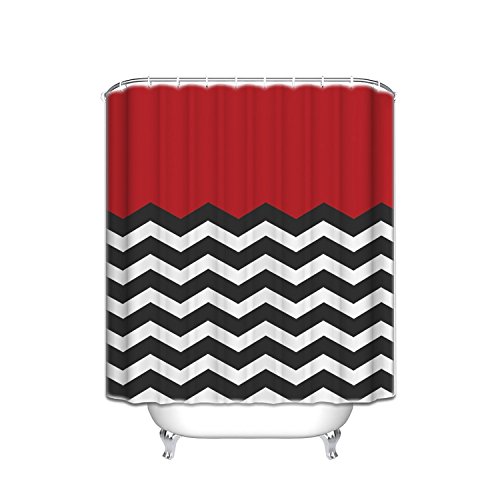 Libaoge Red Black White Chevron Zigzag Mildew Free Waterproof Fabric Polyester Shower Curtain