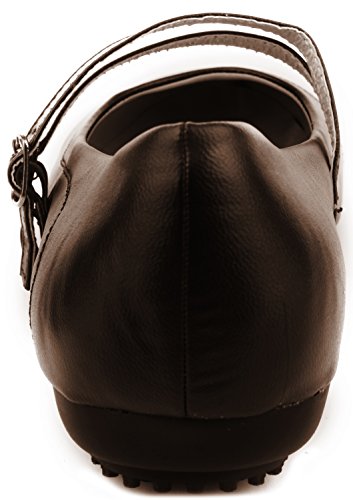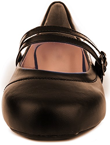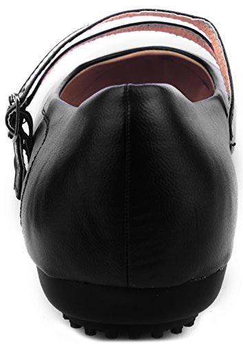 -. Feature : Style: Women's Mary jane. Adjustable buckle closure double foot strap. / Uses: Perfect for business or casual occations. / Comfort: Padded sole. Slight heel. Double foot strap with adjustable buckle closure. / Fit: Runs slightly small. / Material: 100% PU Leather.