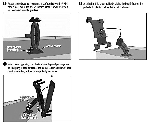ARKON Drill Base Tablet Mount for Apple iPad Air 2 iPad Pro iPad 4 3 2 Samsung Galaxy Note 10.1 Galaxy Tab Pro