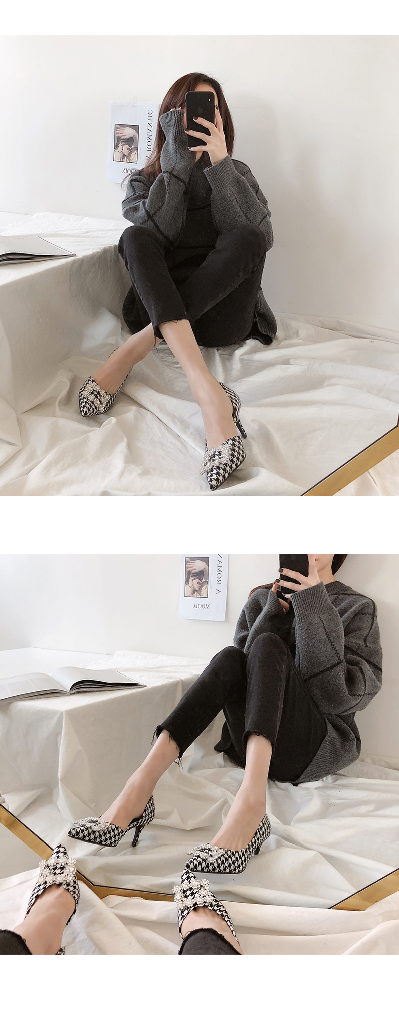 DETAILS - 소재 : 트위드 큐빅 - 컬러 : check,black,houndcheck - 안감 : 없음 - 피팅감 : 정사이즈 / 무게 : 보통인편 - 착화감 : 편해서 데일리 슈즈로 좋아요 - 모델피팅 : 23