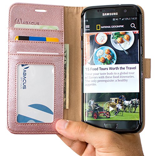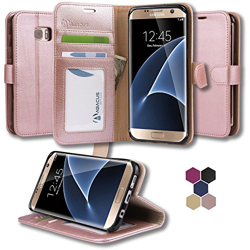 Abacus24-7 Wallet Series Samsung Galaxy S7 Edge Case with Flip Cover and Stand, Pink Gold