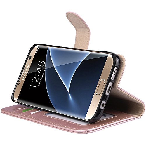 ROSE GOLD WALLET CASE - Designed Specifically for Samsung Galaxy S7 Edge Cell Phone