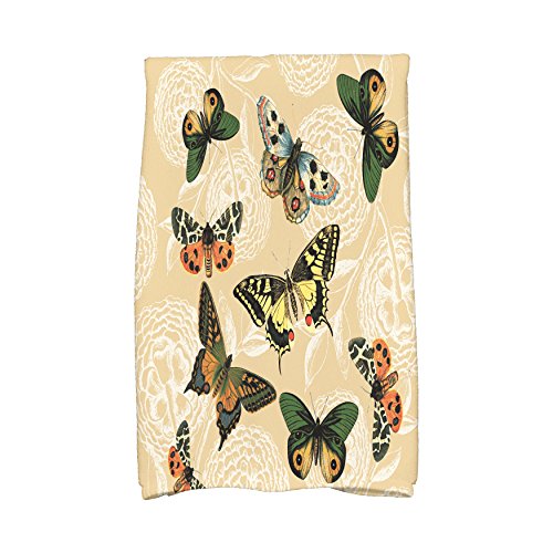 E by design KTAN492YE3IV2 Antique Butterflies and Flowers Animal Print Kitchen Towel, 16" x 25", Gold