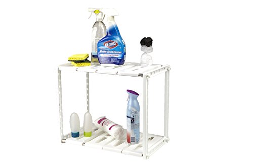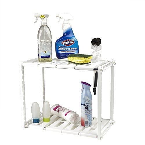Mind Reader 2 Tier Under the Sink Shelf Organizer, White