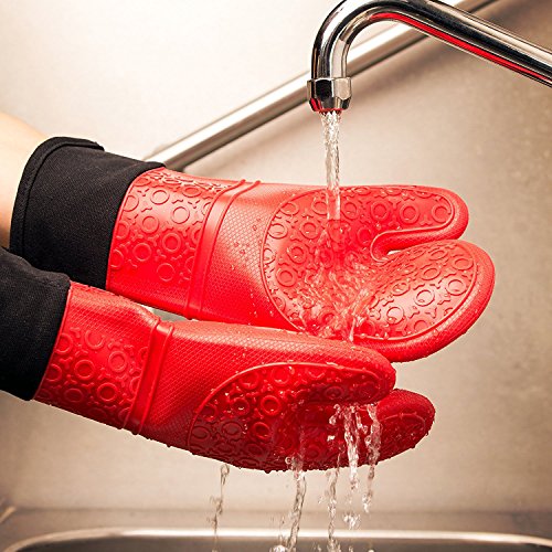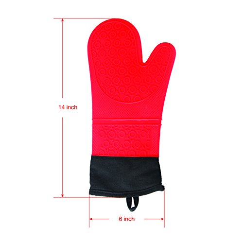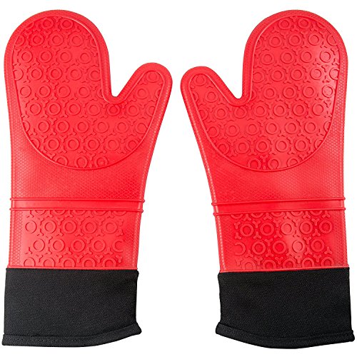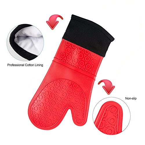 Professional Silicone Oven Mitts Heat Resistant Commercial Grade Extra Long Quilted Cotton Lining Arm Guard- BBQ Grill Kitchen Versatile Insulated Potholder Comfortable Grip 1 Pair Set Gloves