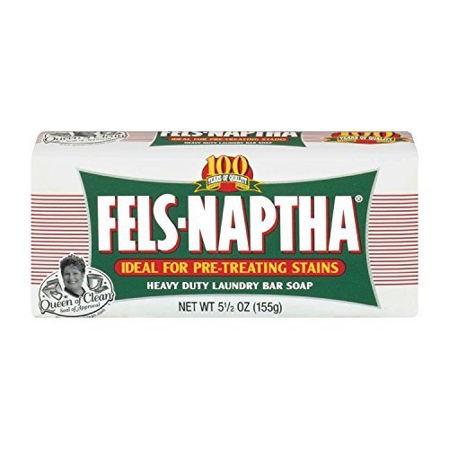 Fels-Naptha Heavy-Duty Laundry Bar Soap, 5.5 oz (Two (2) Bars) MADE IN U.S.A Sale is for TWO Bars Fels-Naptha® is the golden bar that is excellent for pre-treating greasy, oily stains like perspiration stains and ring-around-the collar. Fels-Naptha® has stood the test of time for over 100 years so you know it really works. Features Laundry soap helps remove stains from fabric 5.5 oz. bar Suitable for oily stains HOW TO USE Fels-Naptha® is a time-tested stain remover and pre-treater working especially well on oil-based stains. Just rub the stain with a wet bar of Fels-Naptha® soap. Let it sit for a few minutes and wash as usual. Fels-Naptha® especially works great on stains made by: Chocolate Perspiration Baby Formula Make-up