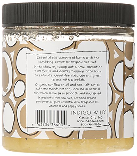 While zum is a made-up word, Indigo Wild zum body scrub uses ingredients that are not. Made with moisture-saturated sea salt and pure essential oils to naturally slough off old, dead skin and improve circulation to regenerate new cells, this natural exfoliator will reveal softer, healthier and glowing skin. No toxins or harsh chemicals.Feature