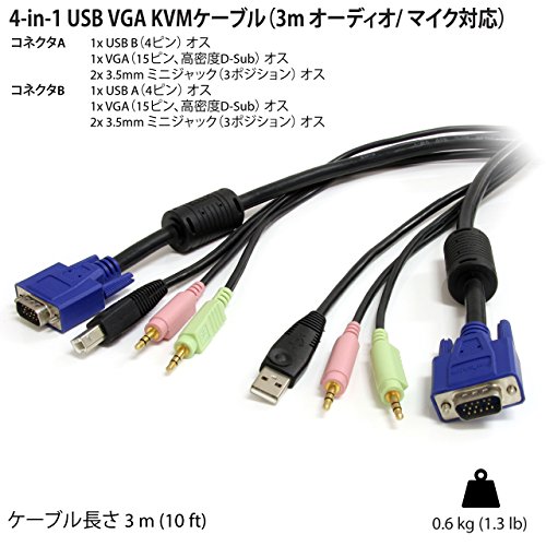 StarTech.com 4- Inch-1 USB VGA KVM Cable with Audio and Microphone (USBVGA4N1A10)