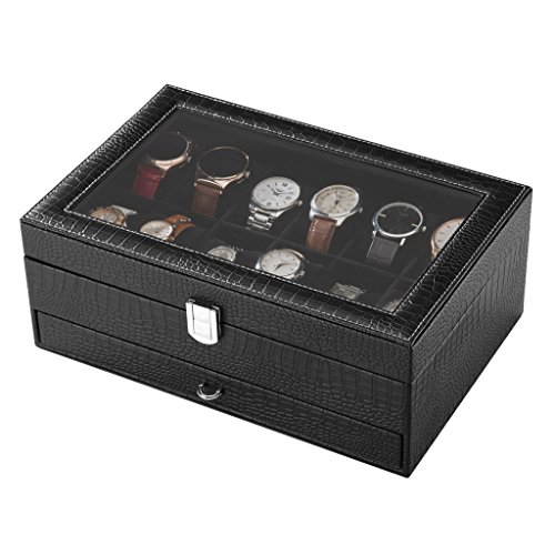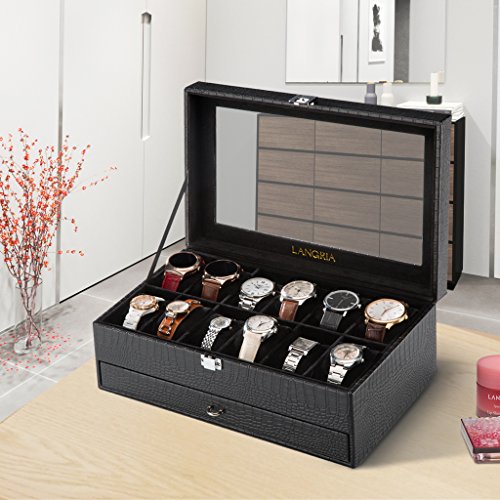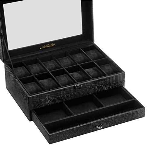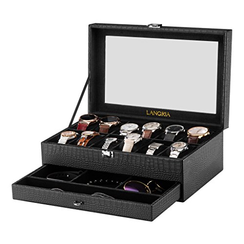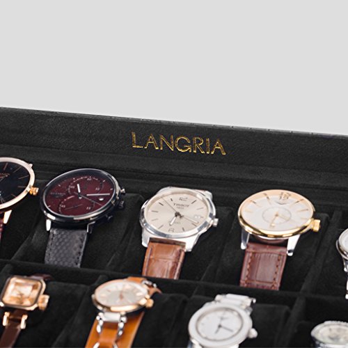 The perfect gift idea for watch collectors LANGRIA's elegant watch and jewelry display case is the perfect gift idea for your watch collector friend. It is beautifully crafted with a sophisticated and classic faux crocodile leather exterior and a protective super soft lining interior to prevent any possible damage to the watches. The showcase could be an ideal present for any occasion, such as birthdays, Christmas, Valentine's Day, Father's Day, Mother's Day, etc.