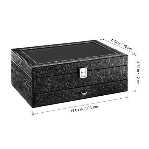 Style-up your space with this elegant display box Need to arrange your beauty accessories and watches? This LANGRIA display box will help you. It measures 12 in W x 8.1 in D x 4.7 in H and weighs 2.4 lbs., perfect dimensions to place it on your dressing table, by the bathroom cabinet, by the entryway on your Chester cabinet or even on top of your office desk. The elegant yet modern all-black appearance matches all spaces and decor style. Moreover, the metal lock on the first layer keeps the watch compartments close.