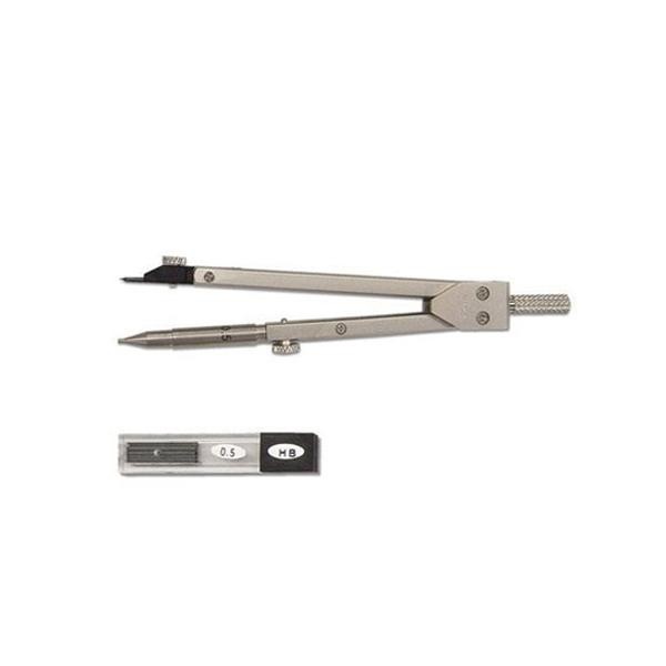 芯先を削らずに0.5m/mの極細線が40mくらい引けるコンパスです。ノック式で、アタッチメント交換が可能です。 |