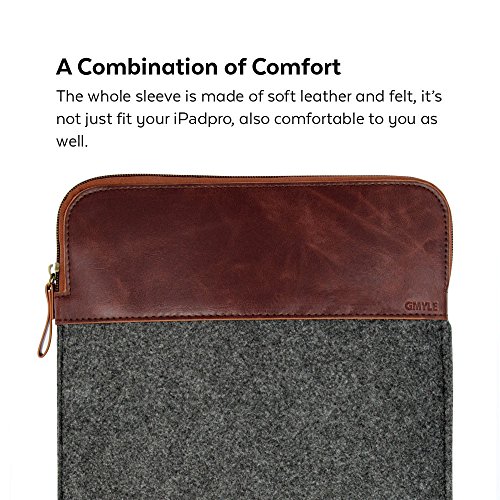 -. Binding : Electronics -. Brand : GMYLE -. Color : Brown -. EAN : 5060456963378 -. Feature : Specifically designed for iPad Pro / Protects your tablet from accidental hard knocks and scratches / Fully padded tablet sleeve with zipper closure / Soft Interior keeps your device free of scratches / Keep your tablet safe with this Sleeve cover -. IsAdultProduct : 0 -. Label : GMYLE -. Manufacturer : GMYLE -. Model : NPL410021 -. MPN : NPL410021 -. PartNumber : NPL410021 -. ProductGroup : PC Accessory -. ProductTypeName : COMPUTER_COMPONENT -. Publisher : GMYLE -. Size : iPad Pro 12.9 inch -. Studio : GMYLE -. Title : iPad Pro Sleeve, GMYLE Sleeve Felt for iPad Pro - Dark Grey & Brown Soft Sleeve Bag Case Cover