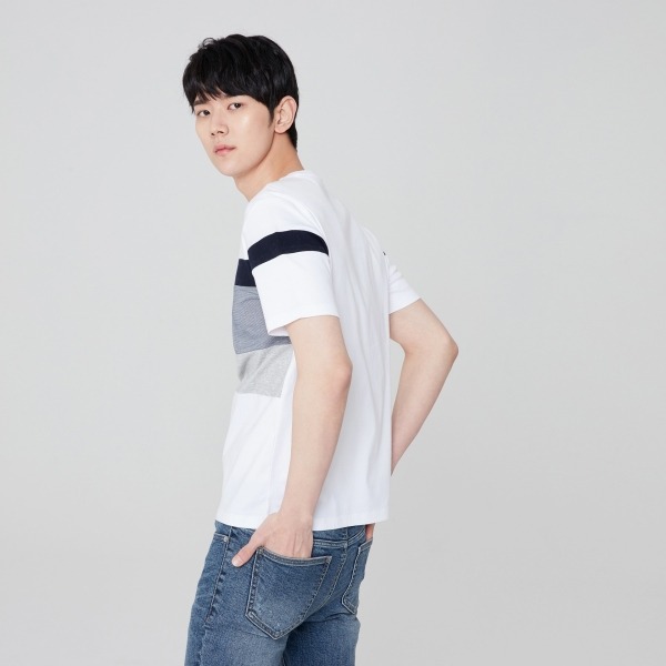 가슴판 배색의 블럭 텍스쳐를 적용한 티셔츠입니다. 소프트한 터치감의 순면 소재로 착장감이 우수합니다. 라운드넥 디자인에 이지한 FIT으로 편안한 외관을 연출합니다. 다양한 아이템과 웨어러블한 코디 연출이 용이합니다.