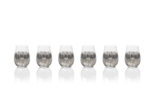 "Reza" Stemless Wine Glass, Platinum Crosshatch Design (Set of 6)