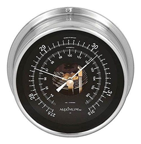 -. Brand : Maximum -. Color : Black -. EAN : 0889932579668 -. Feature : 10001-11000 ft. / Delivers accuracy within 0.08"Hg over a four inch scale of mercury / Temperature compensated, with re-settable needle pointer used to monitor changes in pressure. Dial reads inches of mercury and kilopascals / Center cut window reveals heirloom-quality French movement / Specify altitude if above 3,000' -. Label : Maximum -. Manufacturer : Maximum -. MPN : PRBN -. PackageQuantity : 1 -. PartNumber : PRBN -. ProductGroup : Lawn & Patio -. ProductTypeName : OUTDOOR_LIVING -. Publisher : Maximum -. Studio : Maximum -. Title : Proteus Barometer w Nickel Case & Black Dial (10001-11000 ft.) -. UPC : 889932579668
